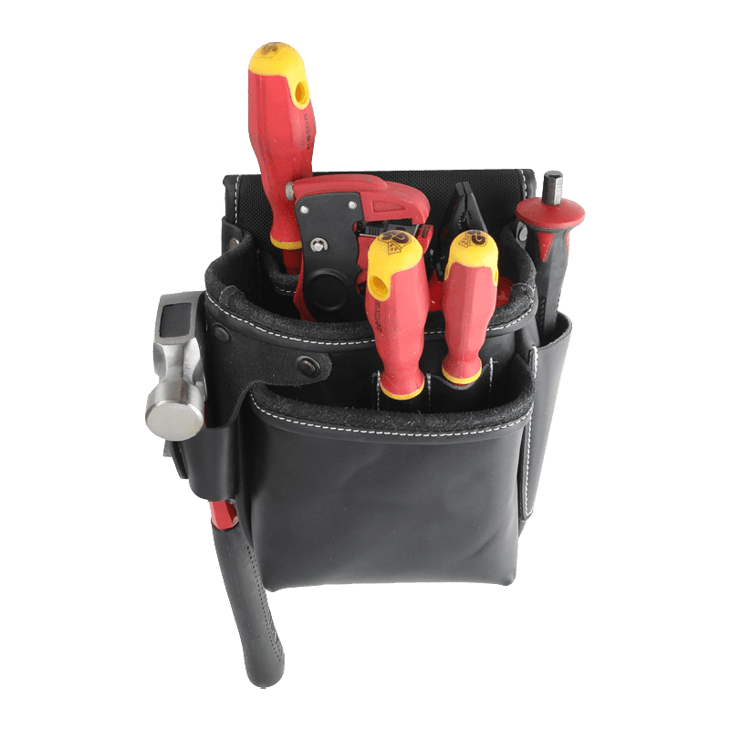 3) جيب داخلي لأدوات يدوية مختلفة و / أو مثقاب لاسلكي ، مع حاملات 3 قطعة بالداخل ؛