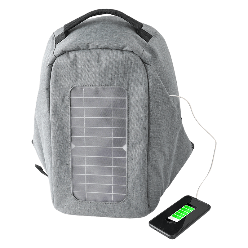 حقيبة ظهر مع شاحن للطاقة الشمسية.