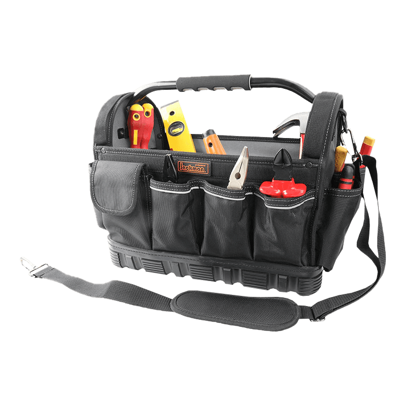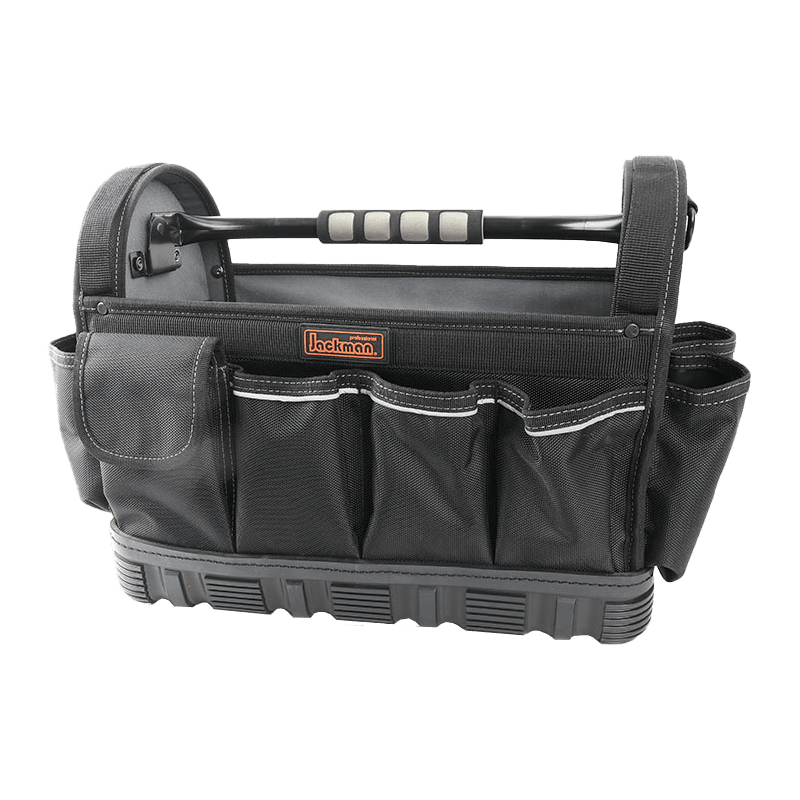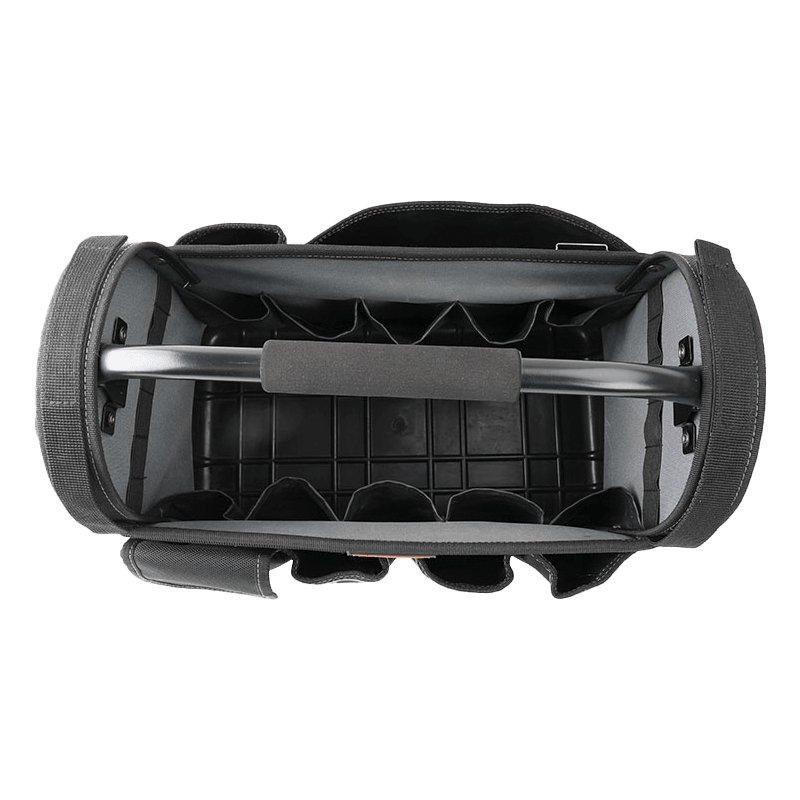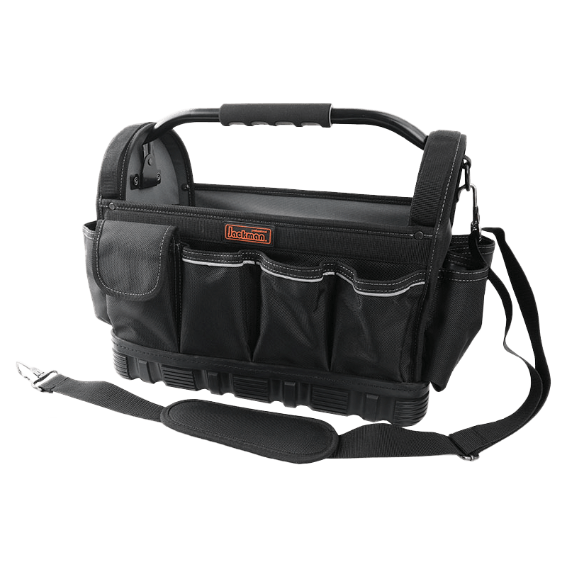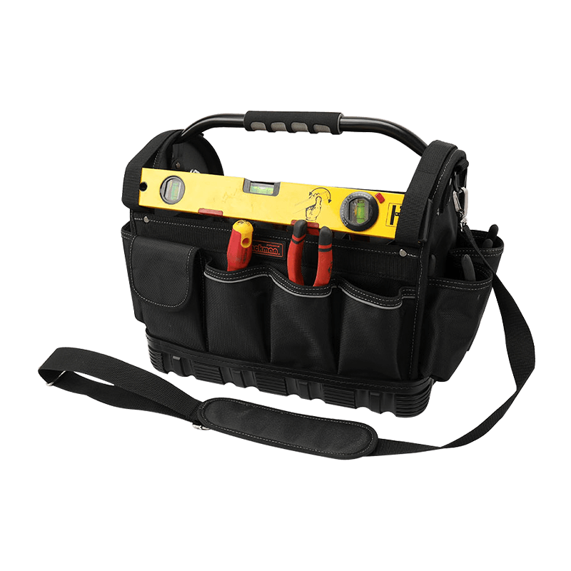 حقيبة أدوات مفتوحة مقاس 16 بوصة مزودة بمقبض من الفولاذ القابل للدوران مزود بقاعدة من مادة PVC JKB-04519 16