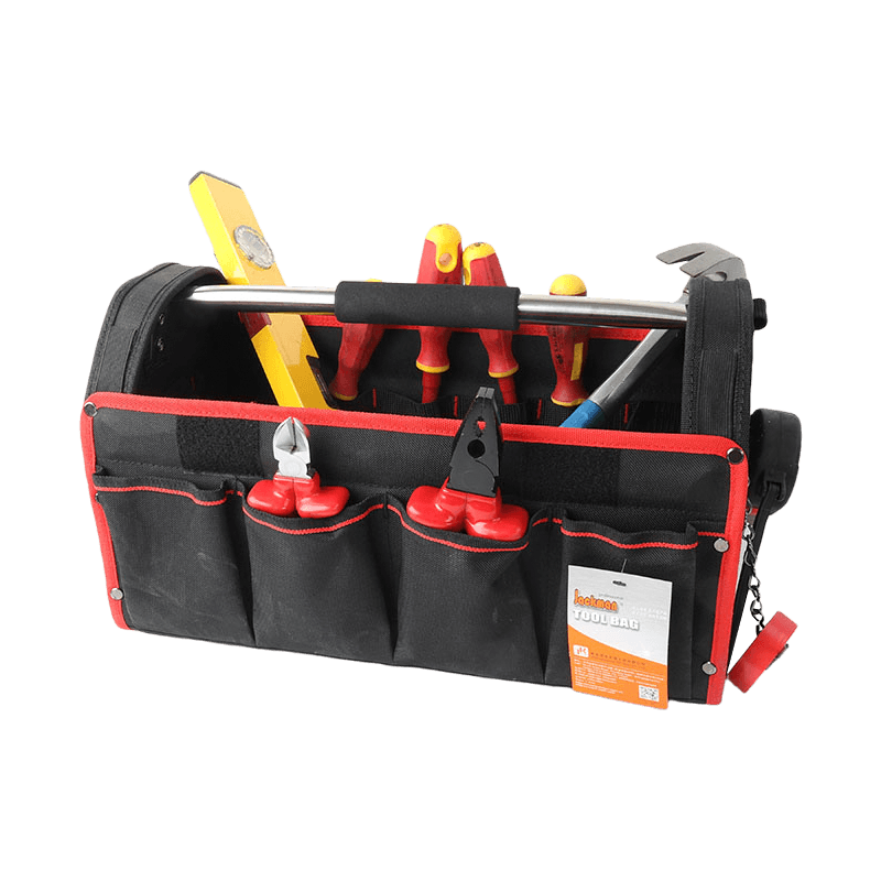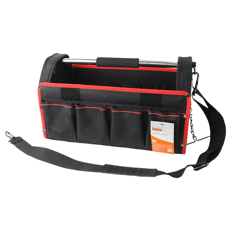 مع غطاء ، شريط كتف ، يد أنبوبية غير قابلة للصدأ 19 مم ، 10 جيوب خارجية ، مع حلقة لخط الشريط مع 6 حاملات أدوات في الأعلى يمكن وضع مستوى طويل ، قضيبان للسكك الحديدية في الأسفل ، مصنوع من البوليستر 600D
