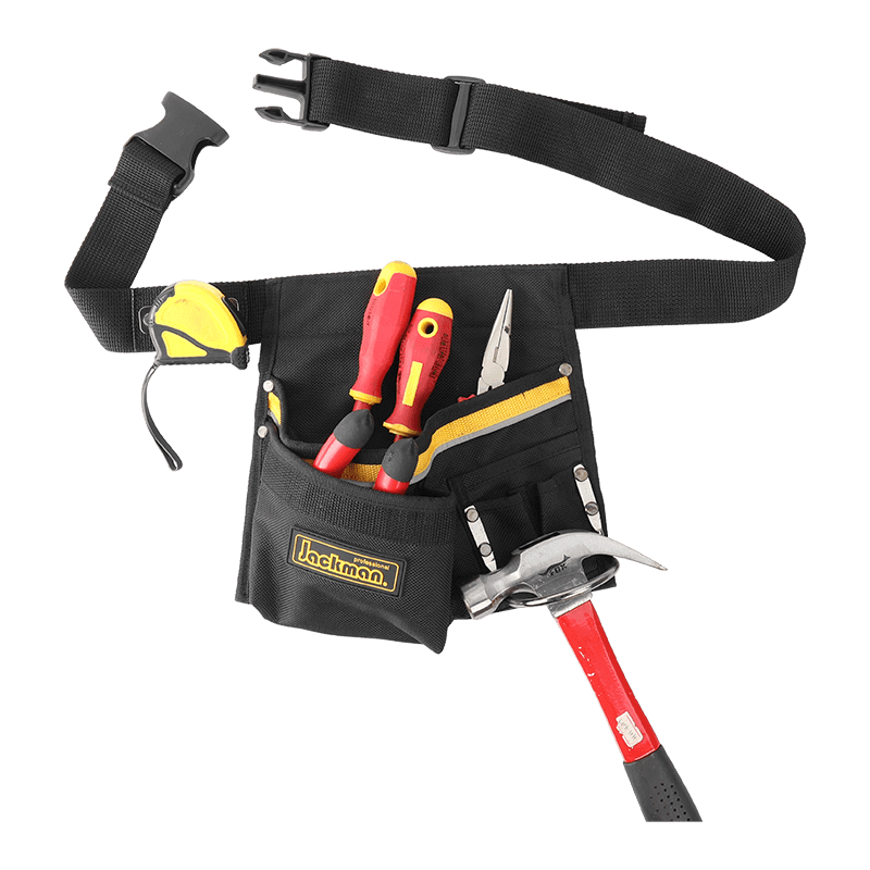 7 حاملات / حزام حقيبة أدوات الجيب مع حلقة المطرقة الفولاذية وحامل القياس JKB-392C18