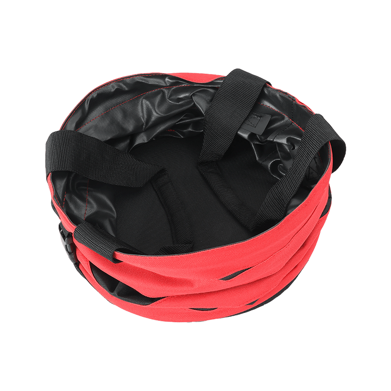 يتم توسيع الزنبرك ، ويمكن طيها وتثبيتها بإبزيم بعرض 2 سم لتوفير حوالي 70٪ من الحجم. 1 أزواج من مقبض حزام لسهولة الحمل.