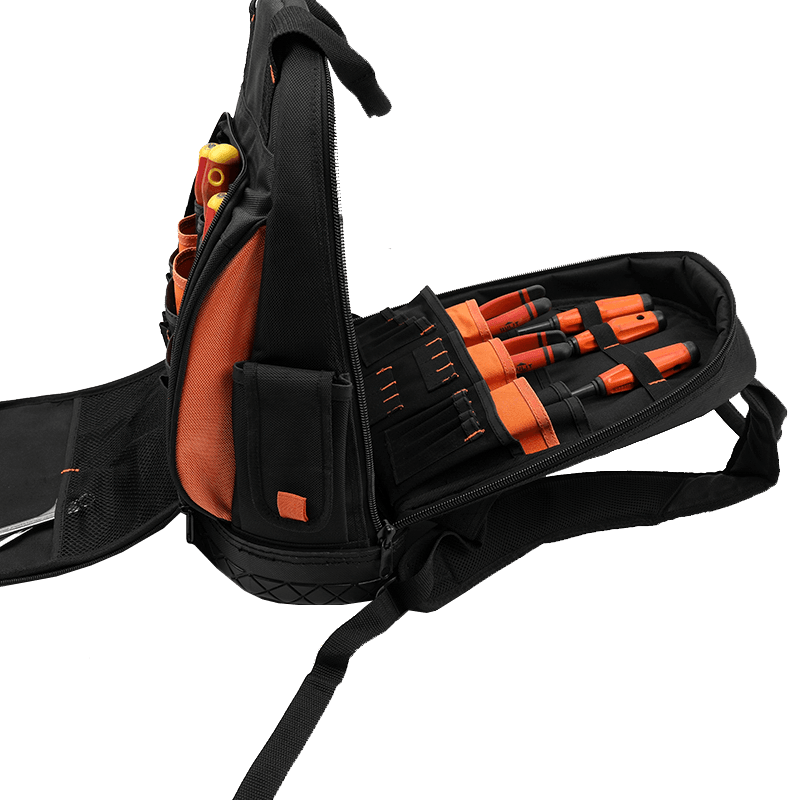 حقيبة ظهر من البولي بروبيلين مقاومة للانزلاق ومقاومة للماء الثقيل ، 600 سلسلة أسود / برتقالي وشريط عاكس ، مصنوعة من 1680D JKB-63314