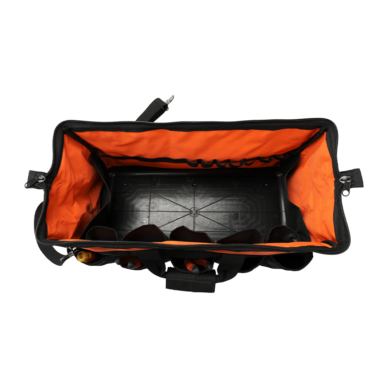 حقيبة أدوات الفم من البولي بروبلين المقاوم للماء 24 بوصة ، 600 سلسلة أسود / برتقالي وشريط عاكس ، مصنوعة من 1680D JKB-86014 24