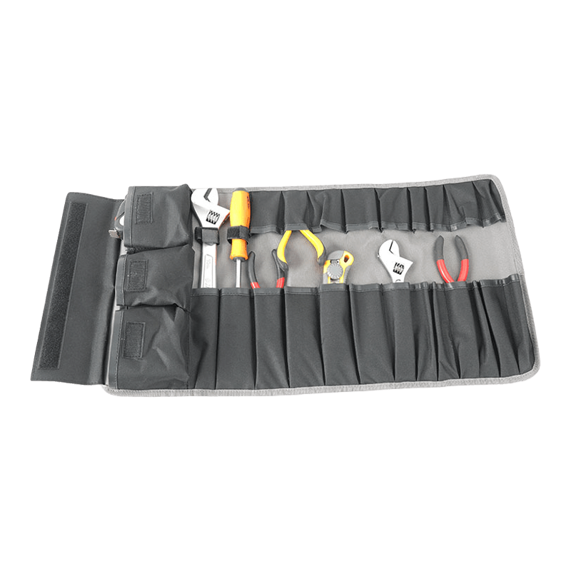 يمكن حمل حامل البكرات بعد لفه. يمكن أن يستوعب حامل البكرات 28 أداة مختلفة ، بما في ذلك 3 جيوب قابلة للطي. يمكن وضع الأداة الممتدة في الخارج بسهولة. حجم المنتج: 620 لتر * 320H