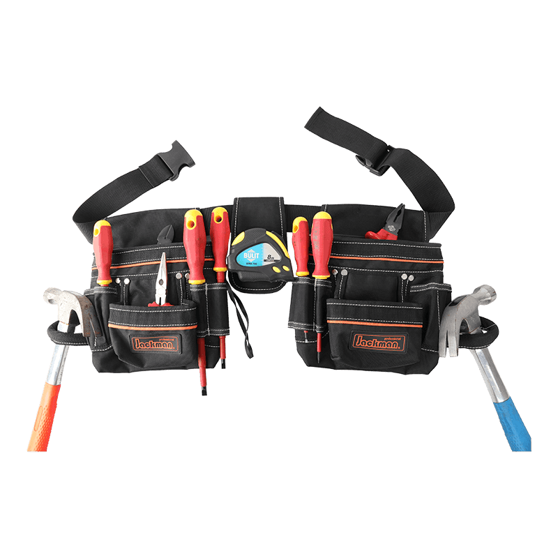 حقيبة أدوات مزدوجة ، حزام أسود / برتقالي وشريط عاكس ، مصنوع من 1680D بوليستر JKB-00217